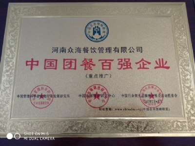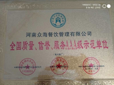 • 18-02-10熱烈祝賀河南眾海餐飲管理有限公司榮獲河南餐飲與飯店協會團餐委